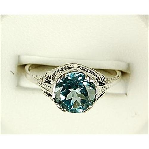 This ANTIQUE Style ring is an AUTHENTIC and ACCURATE copy of a ring from 1925 but THIS one is in MINT condition! It is STERLING SILVER and it features a beautiful Genuine BLUE TOPAZ = TWO CARATS! The BLUE TOPAZ is surrounded by very beautiful filigree work that was typical of the 1920's. This ring can be worn as an 'Antique BLUE TOPAZ Engagement Ring' - or - as an 'Antique BLUE TOPAZ ring'. It is a Size 8 and it can be resized either larger or smaller.