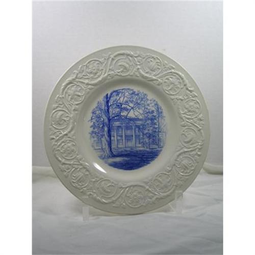 This beautiful blue transfer plate was made by Wedgwood, Eturia, England for The Hermitage in Nashville, Tennessee. This was the home of President Andrew Jackson, the 7th President of The United States. The plate is 10-1/2" in diameter with a beautiful embossed floral border in a grecian style of entwined vines with flowers. The back is printed in blue with "Hermitage Mansion. Nashville, Tennessee. Home of Andrew Jackson 7th Presidents of the U. S. A." Also printed is the mark of Wedgwood and the importer of Jones, McDuffy & Stratton Co., Boston. Impressed in the clay are - Wedgwood - Made in England - and a date stamp for 1940's which in unreadable but I believe this is the close to the date. This beautiful plate is in perfect condition with no crazing, chips, flakes or cracks. This plate would make a fine addition to a collection of Presidential plates too.
