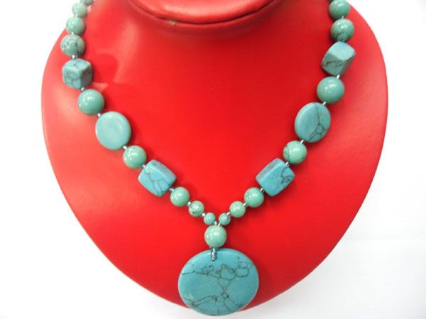 BLUE TURQUISE WITH ROUND PENDANT LONGSTRAND NECKLACE - **|**|** BLUE TURQUISE WITH ROUND PENDANT LONGSTRAND NECKLACE - 20 INCHES ; MSRP: $500