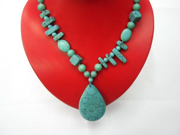 BLUE TURQUISE WITH TEARDROP PENDANT LONGSTRAND NECKLACE **|**|** BLUE TURQUISE WITH TEARDROP PENDANT LONGSTRAND NECKLACE; 20 INCH ; MSRP: $500