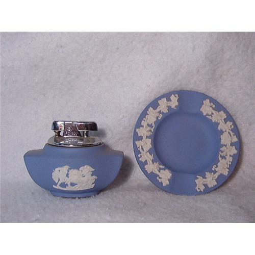 THIS IS A BEAUTIFUL BLUE WEDGWOOD ASHTRAY AND LIGHTER SET. THE ASTRAY IS CLEARLY MARKED 1955 ON THE BOTTOM. THE LIGHTER HAS A "4" AND A "A" ON THE BOTTOM.THE ASHTRAY IS 3.75" WIDE AND THE LIGHTER IS 3.00" WIDE. The Ashtray and Lighter are in Mint condition. They do not have any chips or cracks on them that I can find. You can see most of this in my pictures. These items were purchased by my Late Grandmother in England in the 1950's. If you have any questions about any of my items please feel free to ask. I HAVE OVER 800 POSITIVE FEEDBACKS FOR MY EBAY STORE SO YOU CAN BID WITH CONFIDENCE. Thanks for Looking!!!