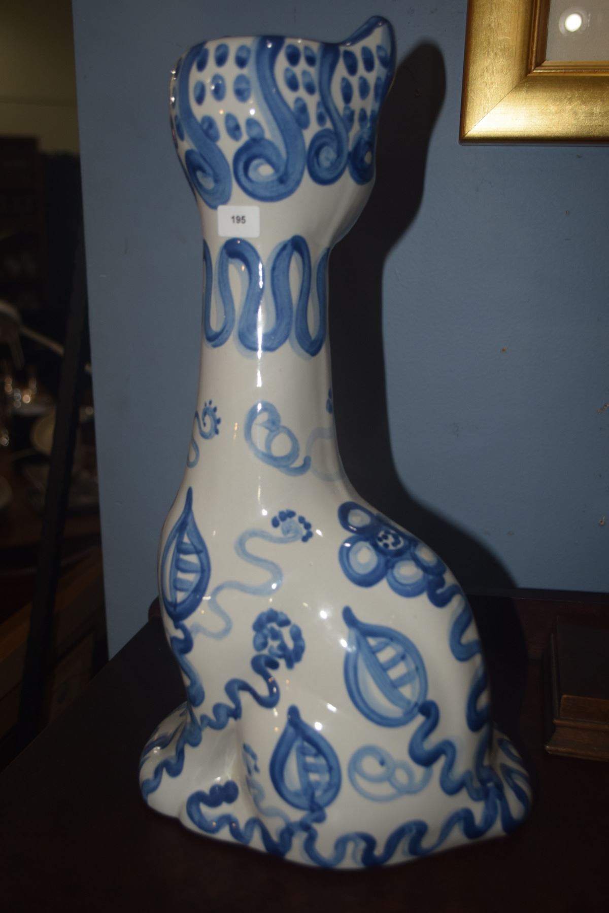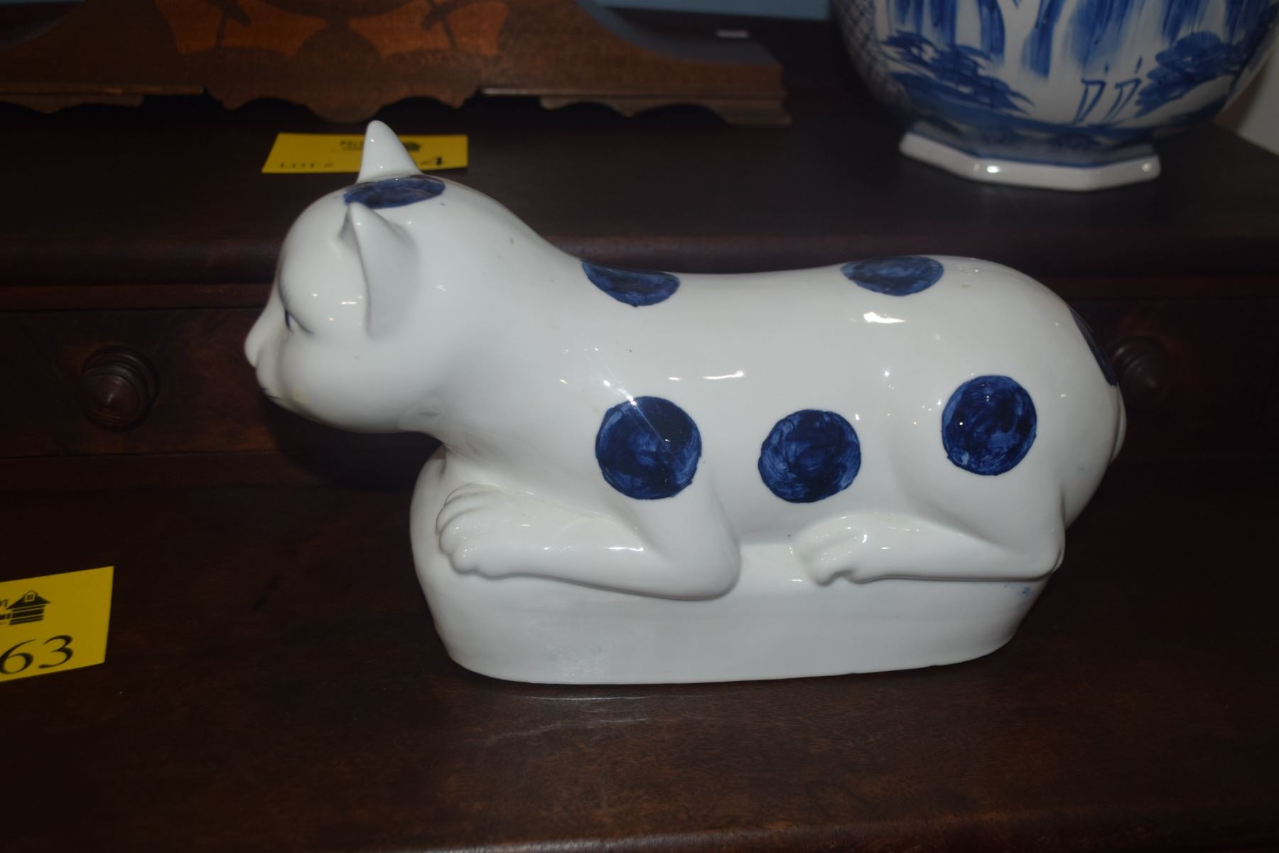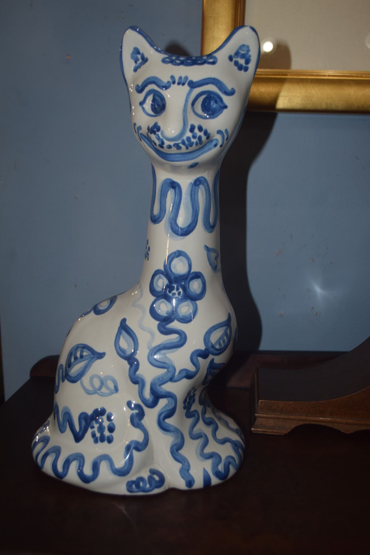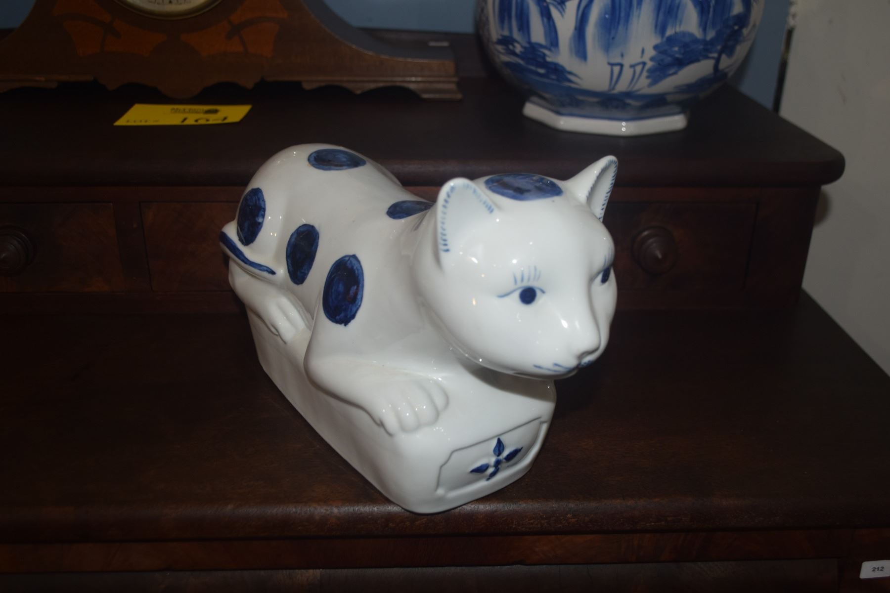 BLUE & WHITE PORCELAIN CAT FIGURES & VASE (3 PCS)