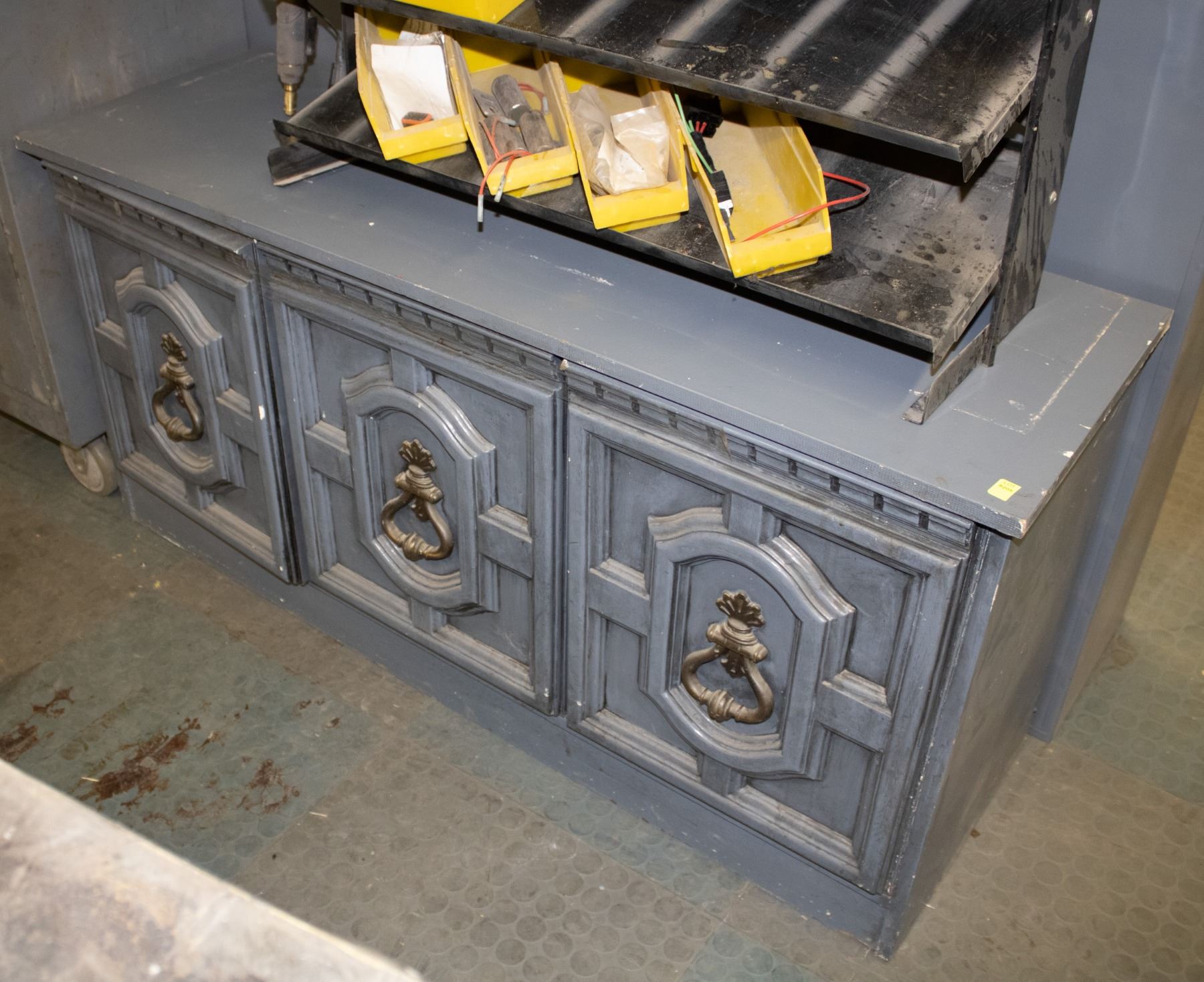 BLUE WOODEN SIDEBOARD APPROX 53" X 17" X 26"