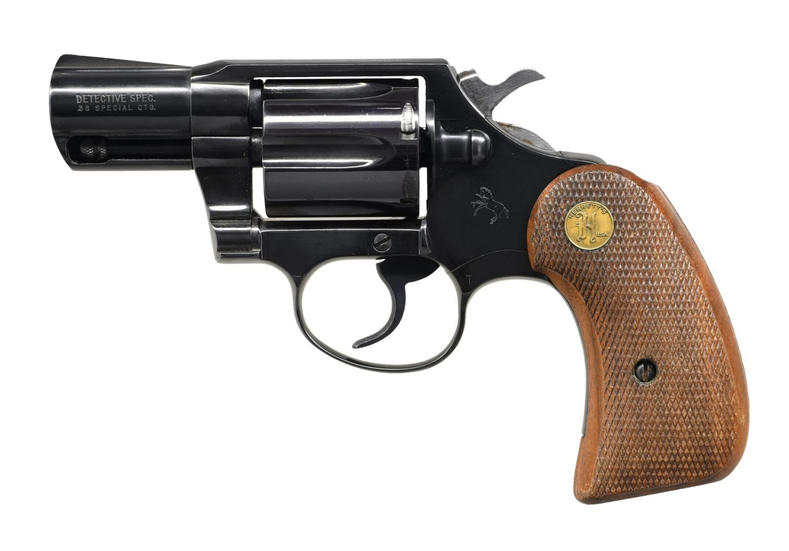 Cal. 38 SPL. S# F36016. Bbl. 2". Mfg. 1974. Double action revolver w/ blued finish. 6 shot fluted cylinder. Blade front w/ rear notch sights. 2 piece checkered wood Herrett's grips w/ brass medallions. CONDITION: Finish coverage complete & consistent. A few light scratches on right side of frame. Bright bore w/ strong rifling. Timing appears correct. (23-2341/JZ). MODERN. $400-600.