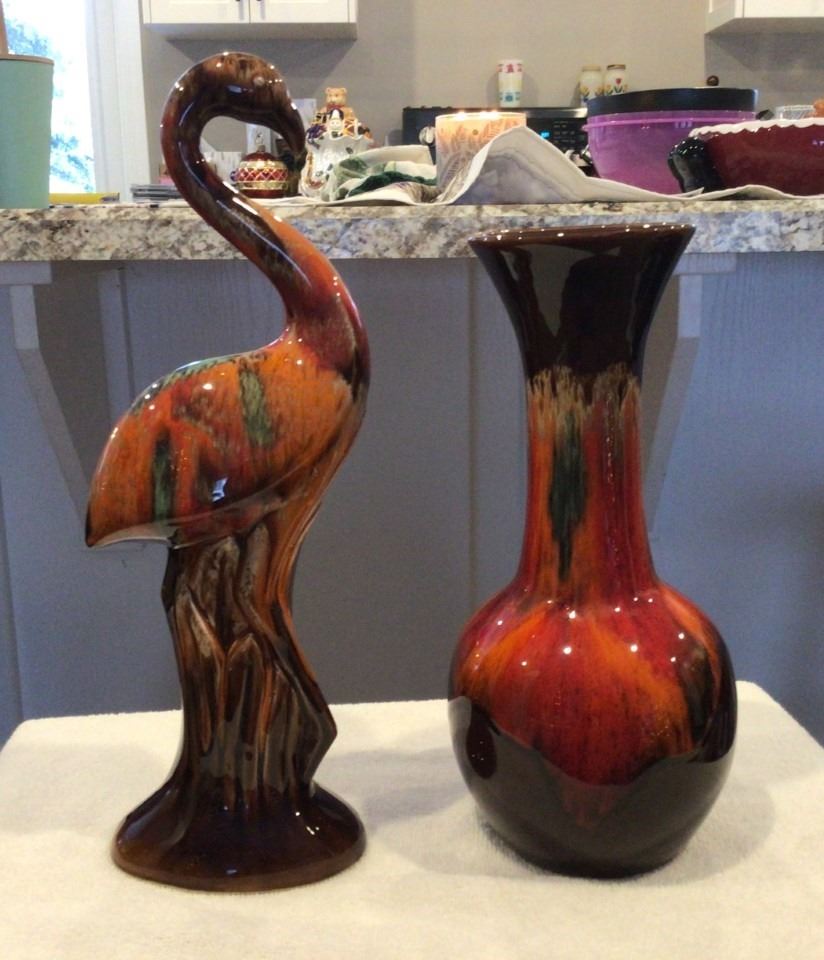 BMP 12" Flamingo, 10" Vase. No chips or cracks.