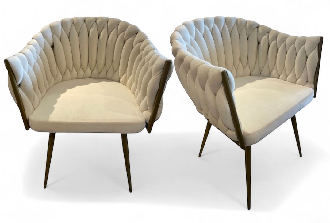 Brand new in box. set of two modern velvet chairs with golden base. Colour options grey or beige; also available as bar chairs. Selected variant: Group of 2 - Beige.