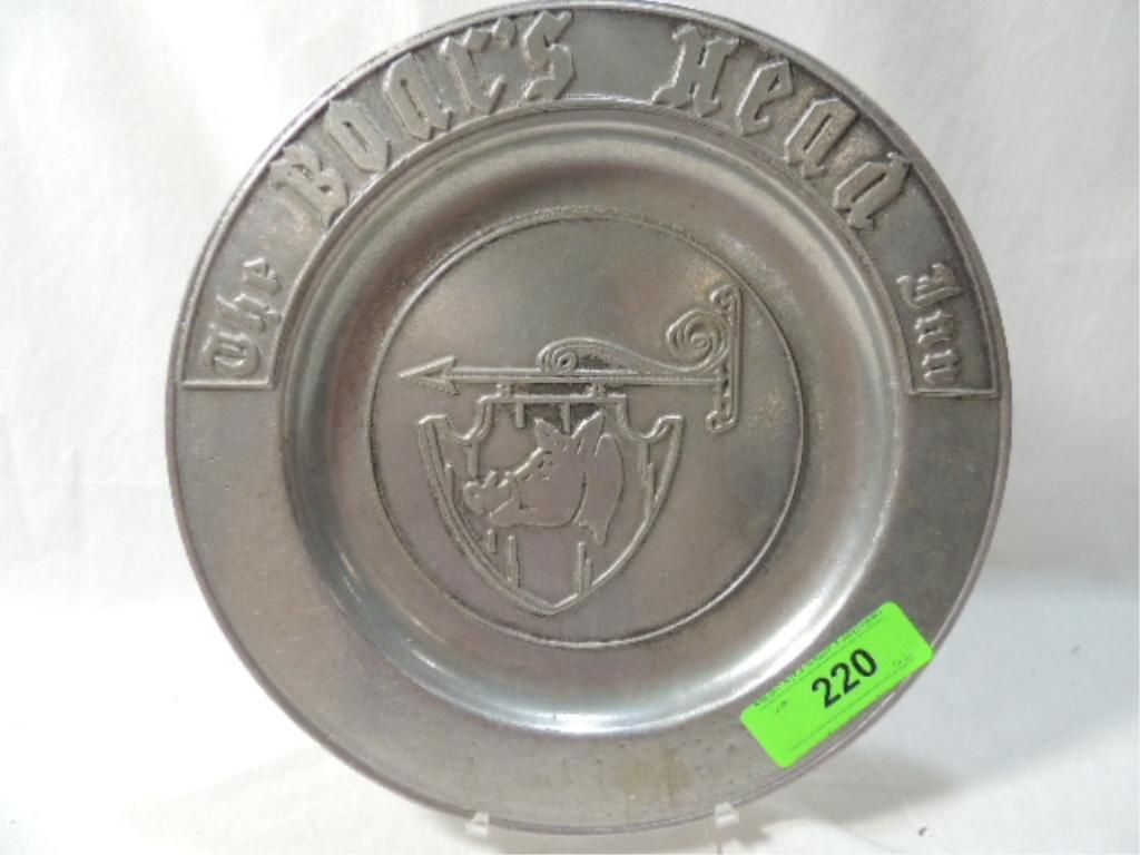 BOARS HEAD INN PEWTER PLATE. AS SHOWN SEE PHOTO FOR MORE DETAILS