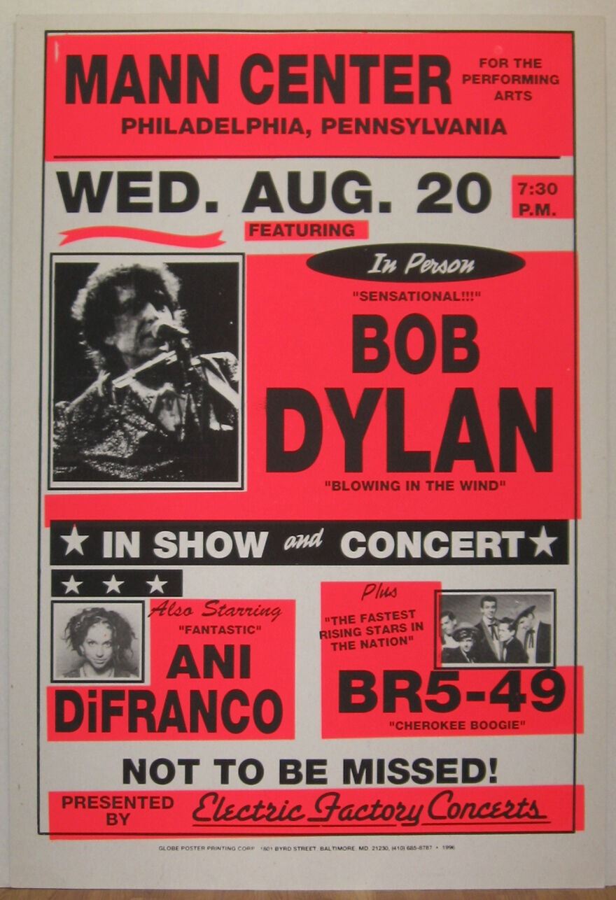 BOB DYLAN * ANI DiFRANCO * BR5-49 appearing on August 20, 1996 at the Mann Center in Philadelphia, PA.