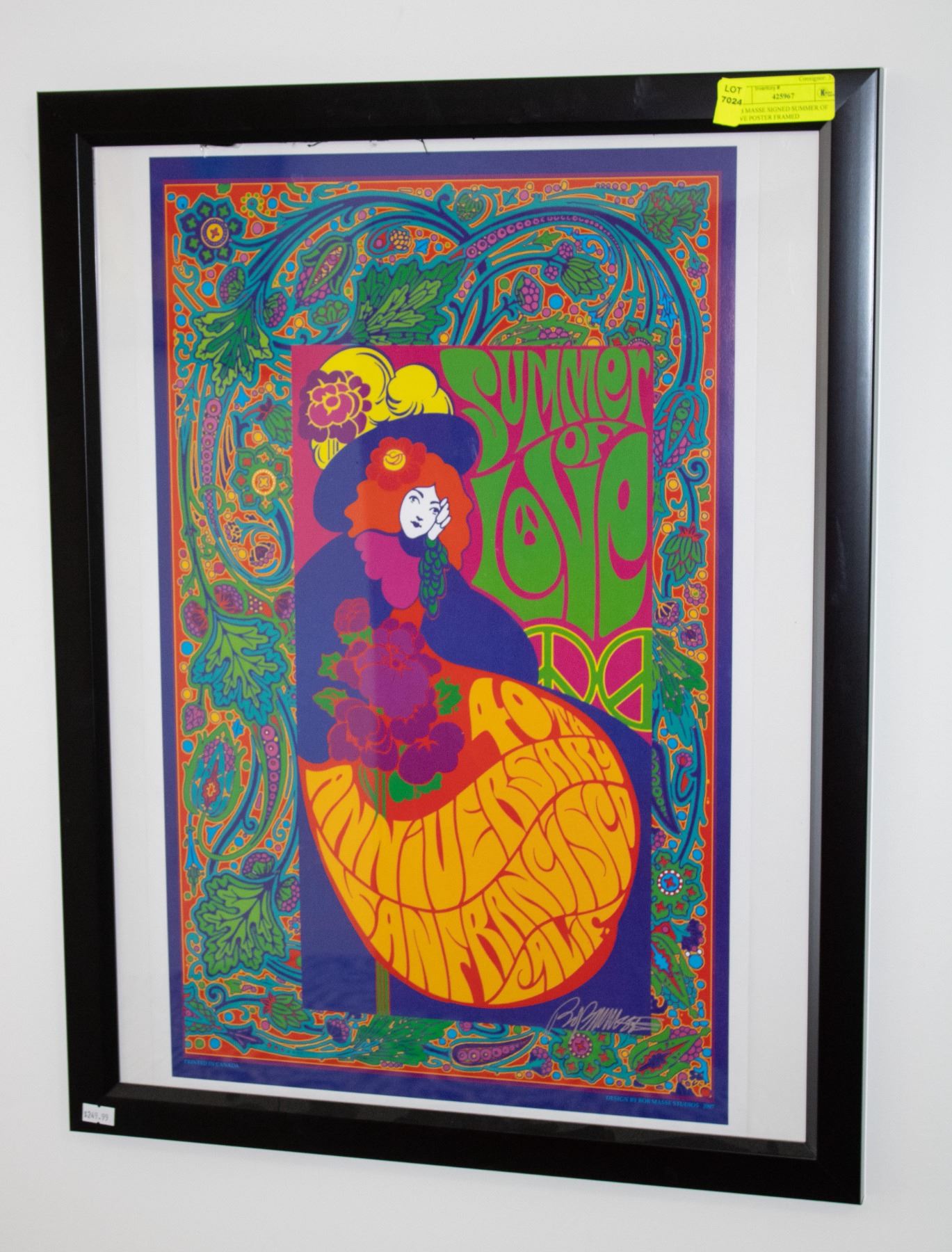 BOB MASSE SIGNED SUMMER OF LOVE POSTER FRAMED