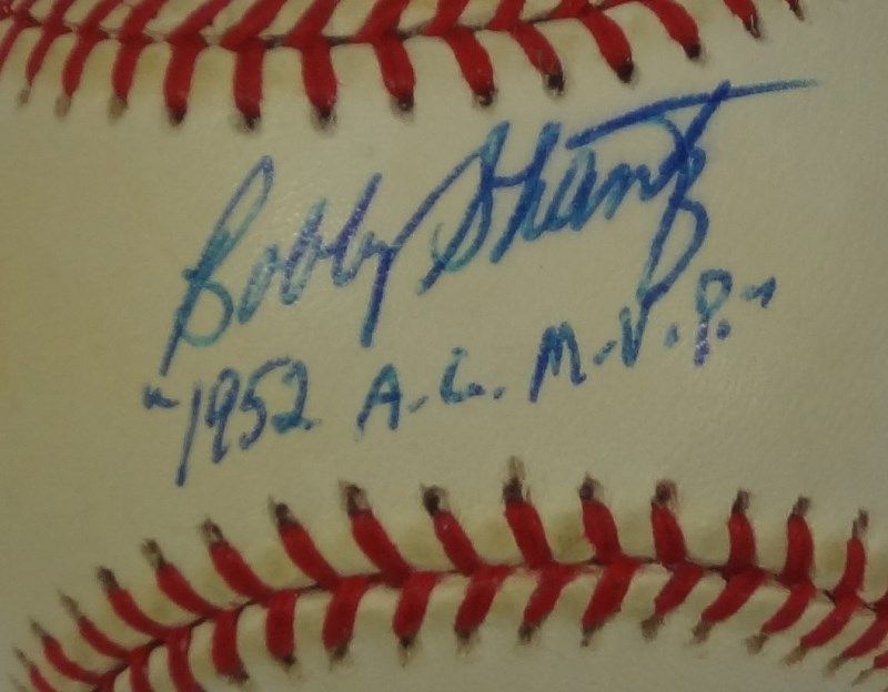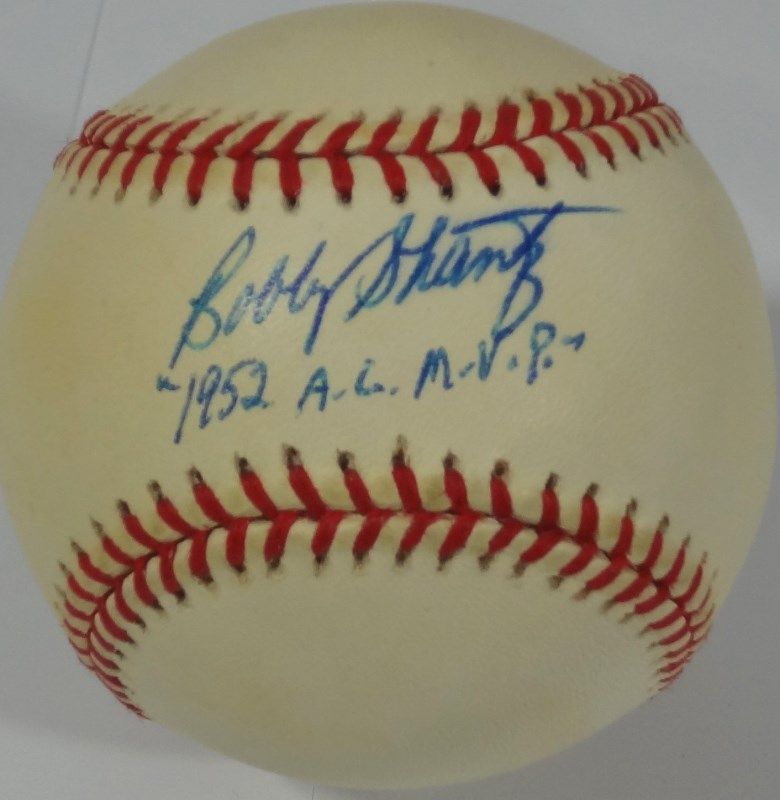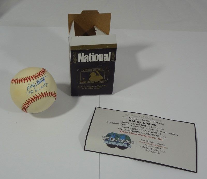 RAWLINGS OFFICIAL AMERICAN LEAGUE BASEBALL SIGNED BY BOBBY SHANTZ "1952 A.L.MVP" COA EST 30.00-40.00