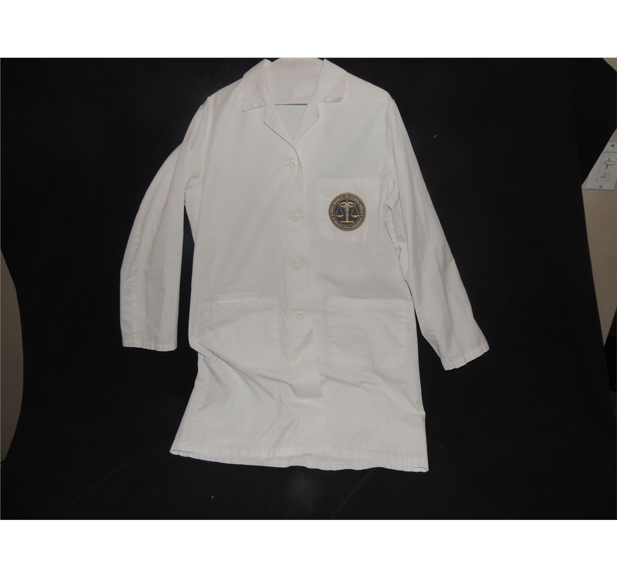 BODY OF PROOF CHIEF MEDICAL EXAMINER'S OFFICE LAB COAT WITH PATCH.