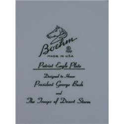 1991 Boehm Patriot Eagle Commemorative English Bone China Plate Honoring President George Bush and Our Troops Of Desert Storm, Made in the U.S.A. Original Satin Lined Box, Plate measures 10¾"D.