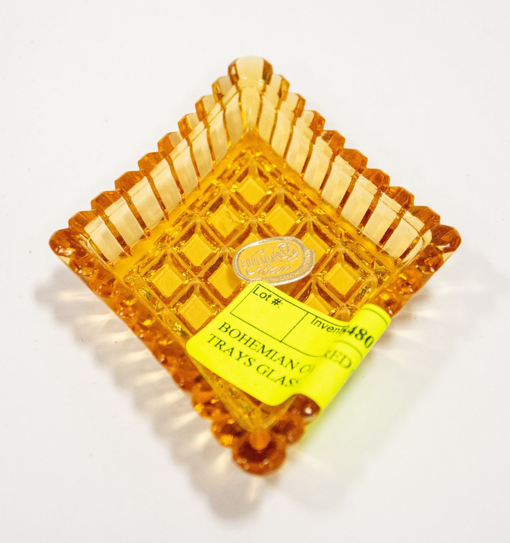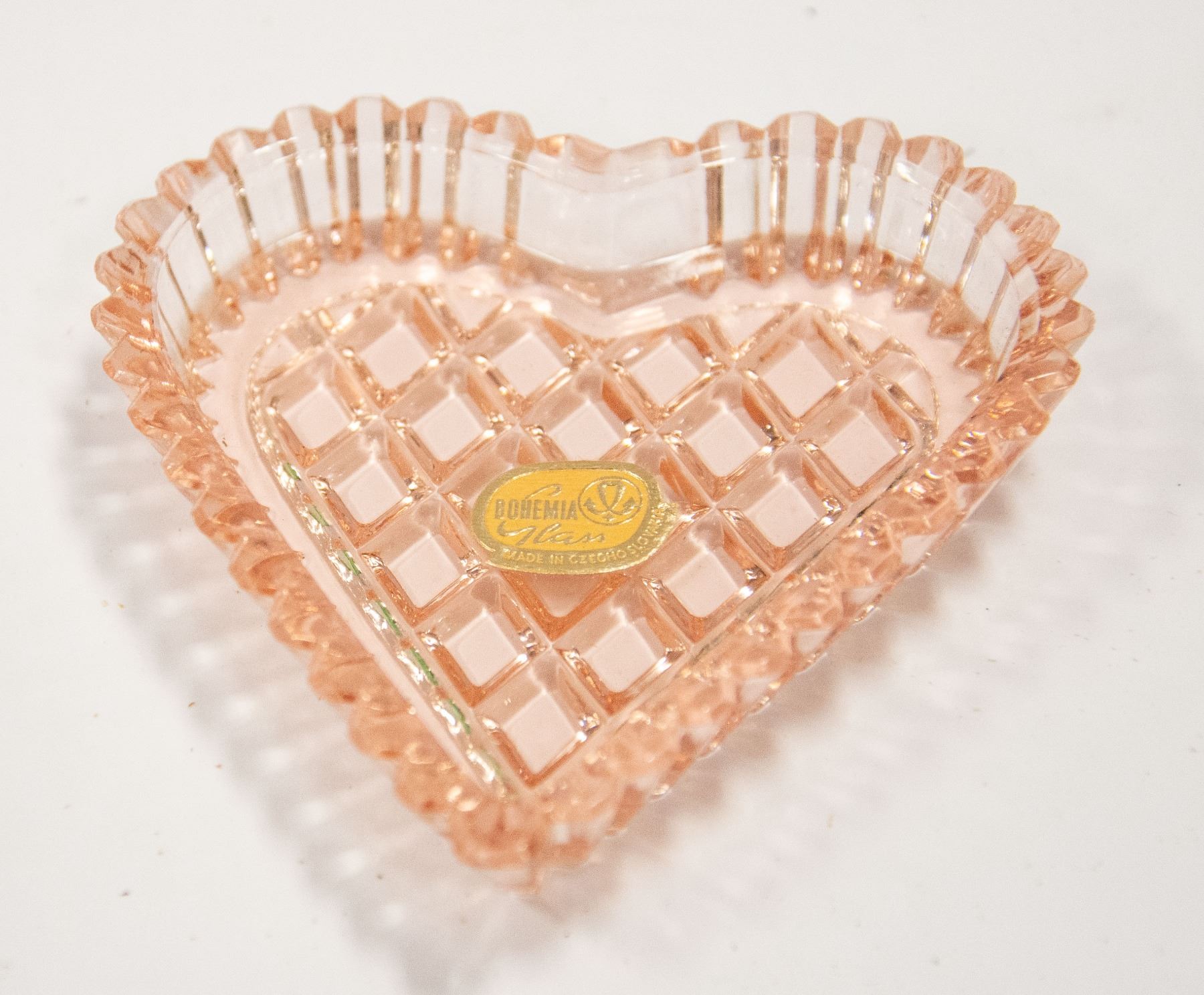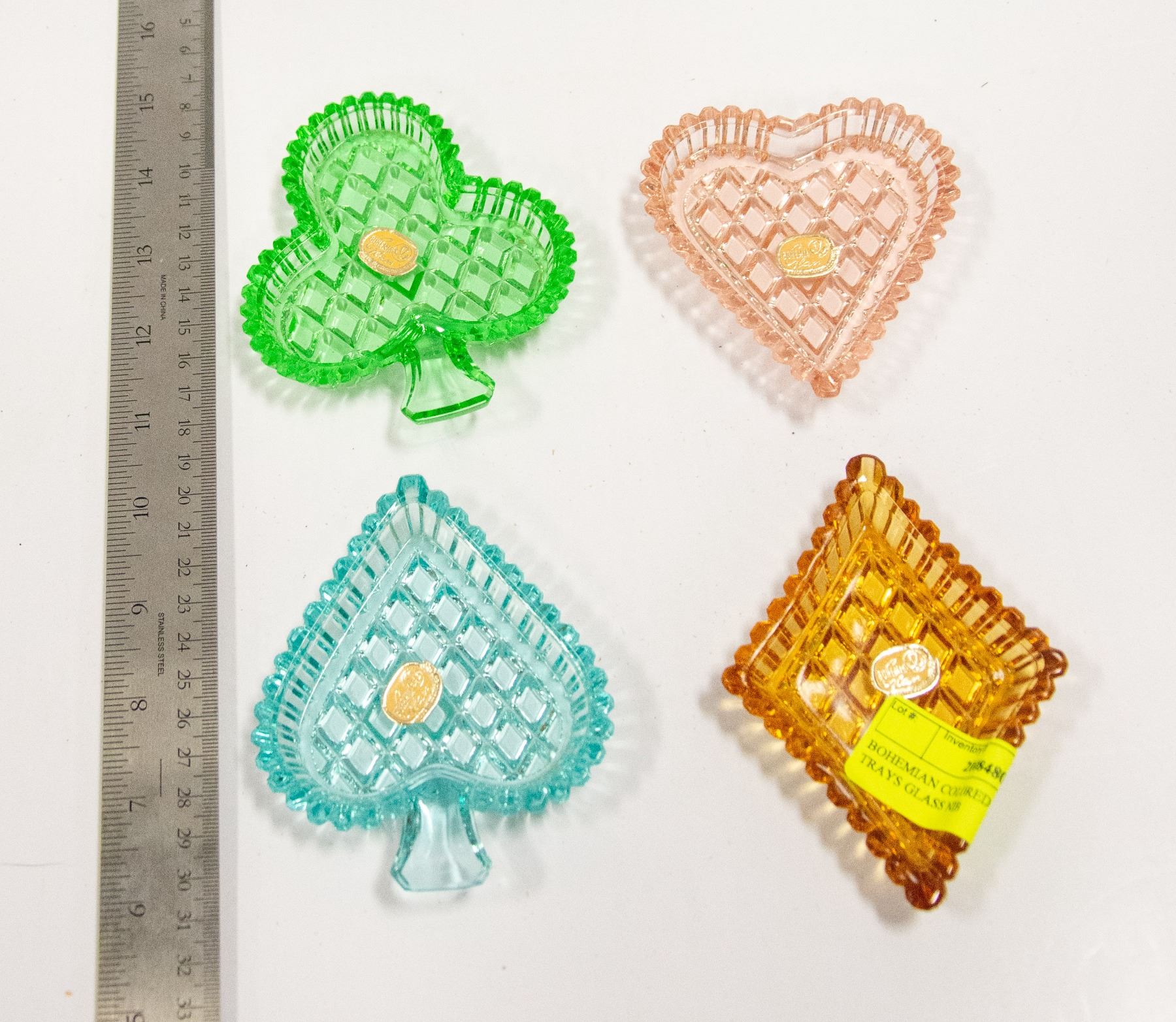 BOHEMIAN COLORED CRYSTAL MINI TRAYS GLASS NIB