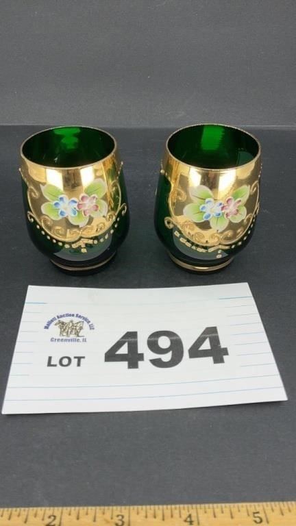 BOHEMIAN GREEN BRANDY GLASSES 2