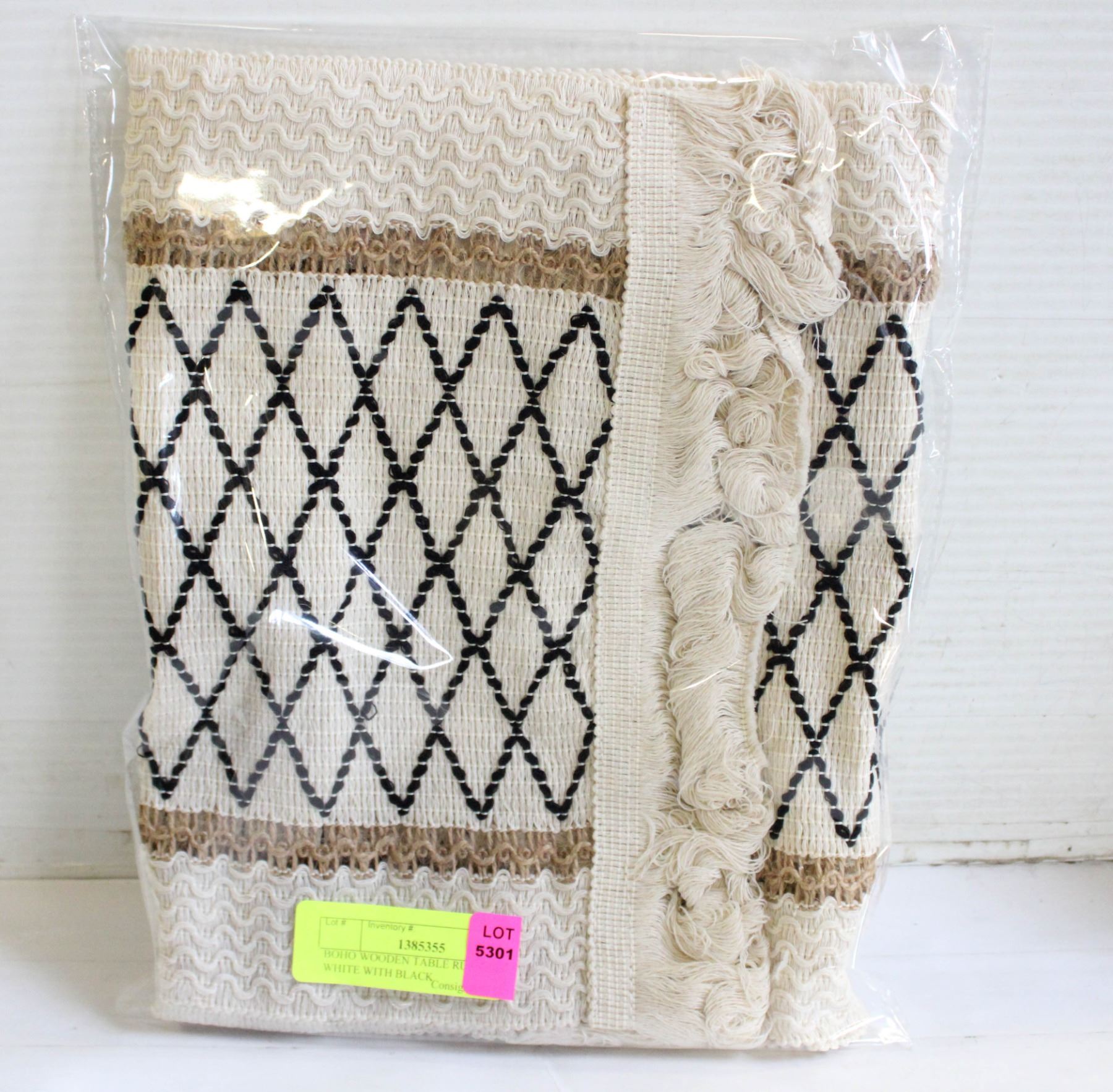 BOHO WOODEN TABLE RUNNER WHITE WITH BLACK