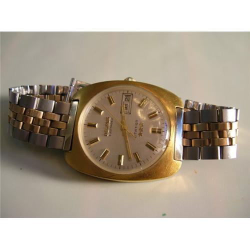 BIG BOLD BENRUS 2-TONE GOLD/STAINLESS STEEL CITATION 3 STAR SWISS ELECTRONIC WITH DATE AND ORIGINAL MATCHING SIGNED BENRUS 2-T0NE GOLD PLATED/STAINLESS STEEL LINK STYLE BRACELET WITH FOLD OVER SAFETY CLASP IN EXCELLENT CONDITION BOTH MECHANICALLY AND COSMETICALLY WITH MINOR SCRATHES THAT CAN BE BUFFED OUT BY A PRO.