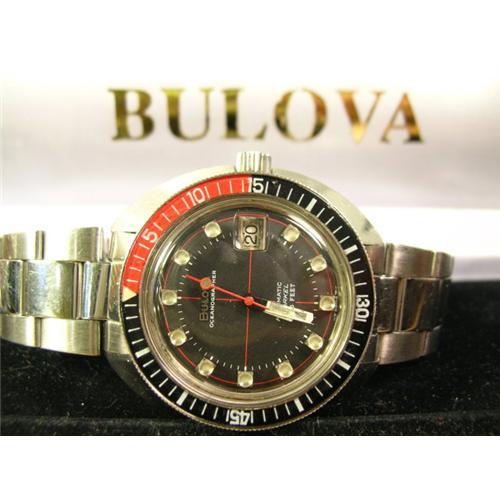 <tr><td>Type:GENT'S BULOVA SNORKEL AUTOMATIC OCEANOGRAPHER/RED&BLACK ROTAT. BEZEL W/BLACK FACE</td></tr>