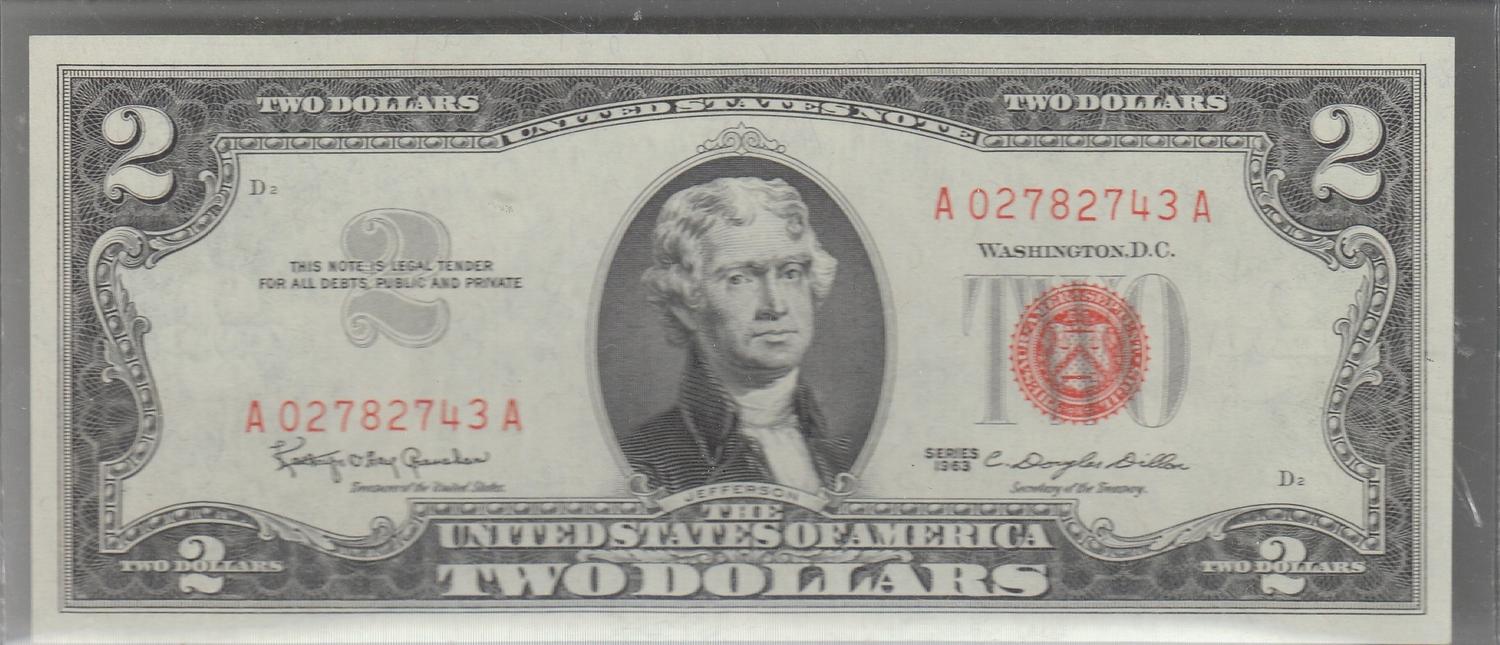 BOLD UNCIRCULATED $2 RED SEAL LEGAL TENDER 1963