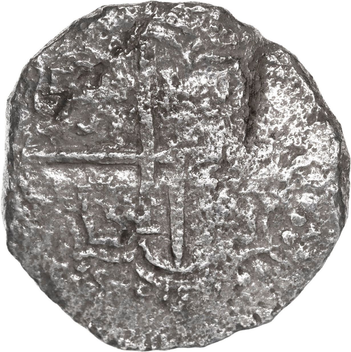 BOLIVIA, Potosí, cob 8 reales, Philip III, assayer not visible, quadrants of cross transposed, Grade 3. KM-10; Cal-Type 165. 21.48 grams total. Round flan with surface corrosion and dent (bend) in part of edge, full shield, doubled cross, lightly toned all over. With original Fisher tag and certificate 86A-193822 in display portfolio. Recovered from: Atocha, sunk in 1622 west of Key West, Florida