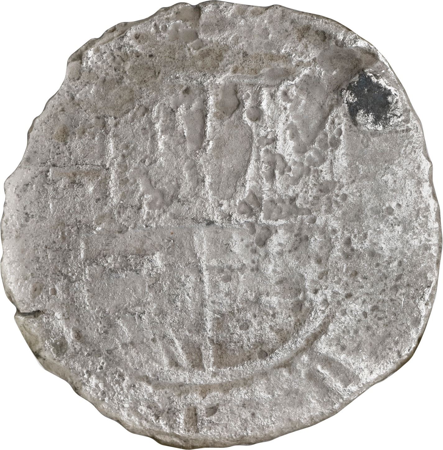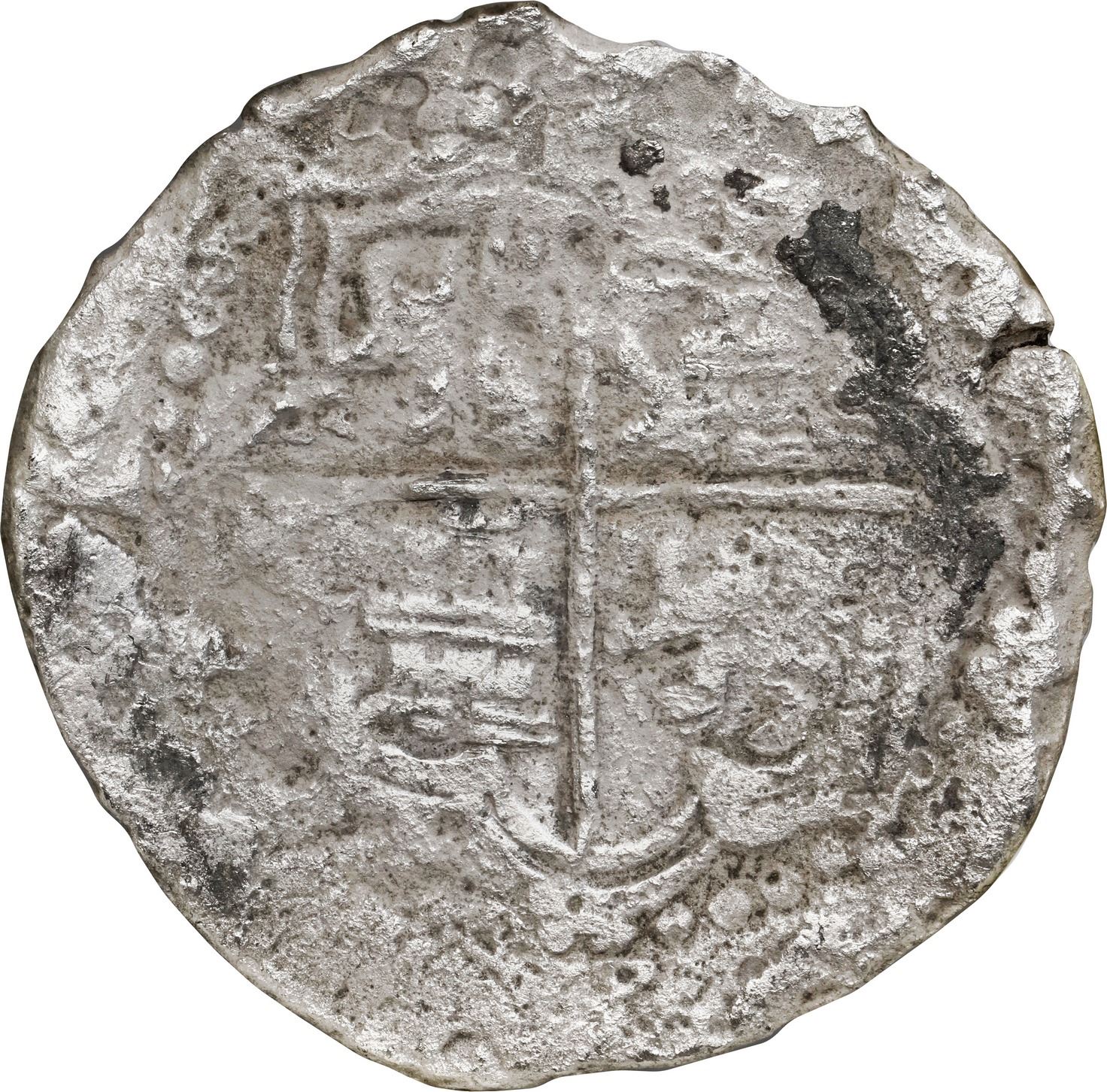 BOLIVIA, Potosí, cob 8 reales, Philip III, assayer not visible, quadrants of cross transposed, Grade 2, NGC Shipwreck Effect (São José Shipwreck Label). KM-10; Cal-Type 164. Most of shield and cross visible amid minor pitting, king's ordinal visible in obverse legend, a few dark encrustation spots. Recovered from: São José, sunk in 1622 off Mozambique, east of Africa
