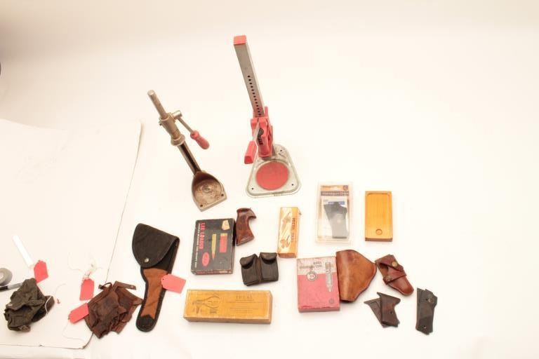 Bonanza lot; Holsters, grips, Lee loaders, cleaning kits, accessories, two corking devices for home brewer, reloading and home brewing, DO NOT MIX ! . Est:$150-300
