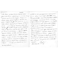 (1769 - 1821) The "Little Corporal" whose brilliance in the field of battle and as Emperor of France has made him perhaps the most important figure of post-Renaissance Europe. Good content L.S. "Nap" with two holograph emendations, 2pp. 4to., Paris, Mar. 8, 1811, in French to Gen. Alexandre Berthier, in part: "...There are three thousand men at Burgos and two thousand at Valladolio. The two thousand at Valladolio are destined for the Army of Portugal, also some of the three thousand at Burgos. Order [Marshal Jean-Baptiste] Duke d'Istrie to have ready three thousand for the army of Portugal, and to direct for this army right away that it will take a definitive position...I authorize the Duke d'Istrie to dispose of five hundred thousand francs to pay for...the army of Portugal...[in holograph] send the other...francs [in holograph] to Madrid for the army of the center...". Napoleon's 1810 campaign in Portugal, led by General Andre Massena, began optimistically, but his army was repulsed by Wellington at Bussaco in late September, and a winter of increasing frustration followed. By March 1811, the time of this letter, Massena was forced to retreat toward Spain, leaving, by April, Alameda as the only French stronghold. There, he once again met Wellington, only to once again be roundly defeated on April 4, 1811. Bold emendations and signature, very good condition.