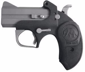 BACABG PRODUCT DETAILS FAMILY:Derringer Series MODEL:Big Bear CA Compliant TYPE:Specialty Handgun ACTION:Single Action FINISH:Black STOCK/FRAME:Steel Frame STOCK/GRIPS:Extended Black Rubber CALIBER/GAUGE:45 Colt CAPACITY:2 BARREL:3" OVERALL LENGTH:5" SIGHTS:Bladefront/Fixed Rear SAFETY:Cross Bolt Safety ADDL INFO:California Compliant Model ADDL INFO:Interchangeable Only w/CA BBLs BECCA
