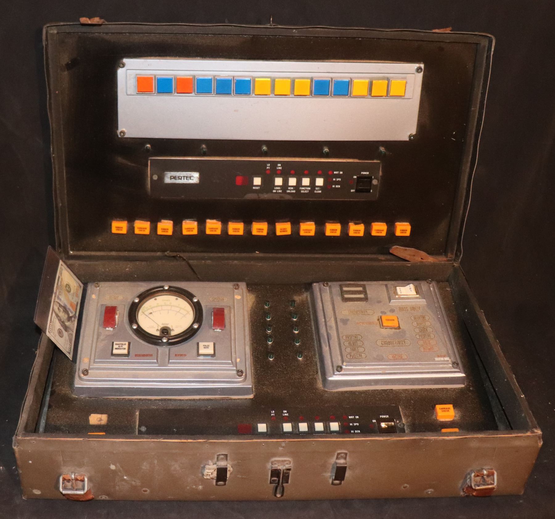 This prop is something Secret Agent, Military, or Medical but origin is lost. Looks like a REMOTE DETONATOR? Probably used in several films and TV shows. Guessing 1965-1975 era?