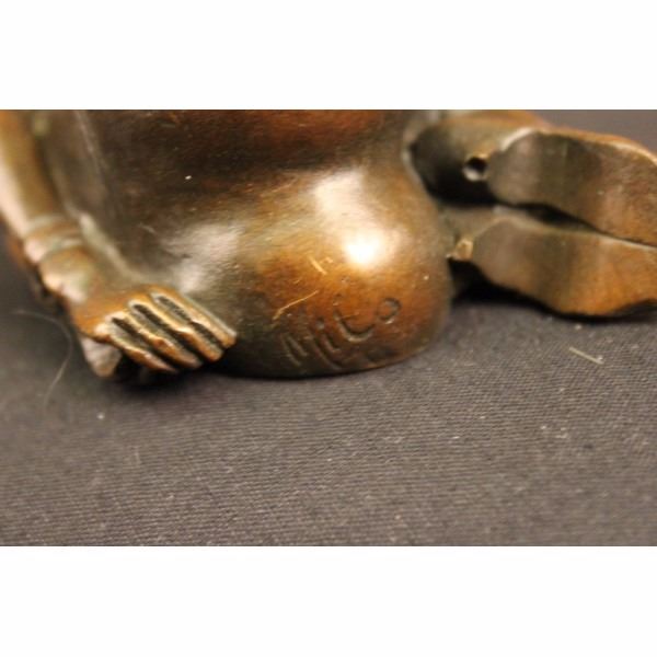 Will make a stunning conversation piece !Perfect for your desk, or at a Dinner Party, or maybe, a special treat, just for yourself!A stunning creation with exquisite detail cast by the traditional lost wax or hot cast method this is not to be confused with cheap imitations..This is bronze..not bronze resin Signed by MiloIn perfect condition offered with no reserve The beautiful quality of this substantial piece make it a must for serious collectors It weighs 2 Lb sand measures 2" high and the length is 4 1/2" Condition:This sculpture is in a very good condition. Bronze Dimensions with Marble Base:Height 2" x Width 4 1/2"Weight : 2 LBSInventory : 5314R04435 Will make a stunning conversation piece !Perfect for your desk, or at a Dinner Party, or maybe, a special treat, just for yourself!A stunning creation with exquisite detail cast by the traditional lost wax or hot cast method this is not to be confused with cheap imitations..This is bronze..not bronze resin Signed by MiloIn perfect condition offered