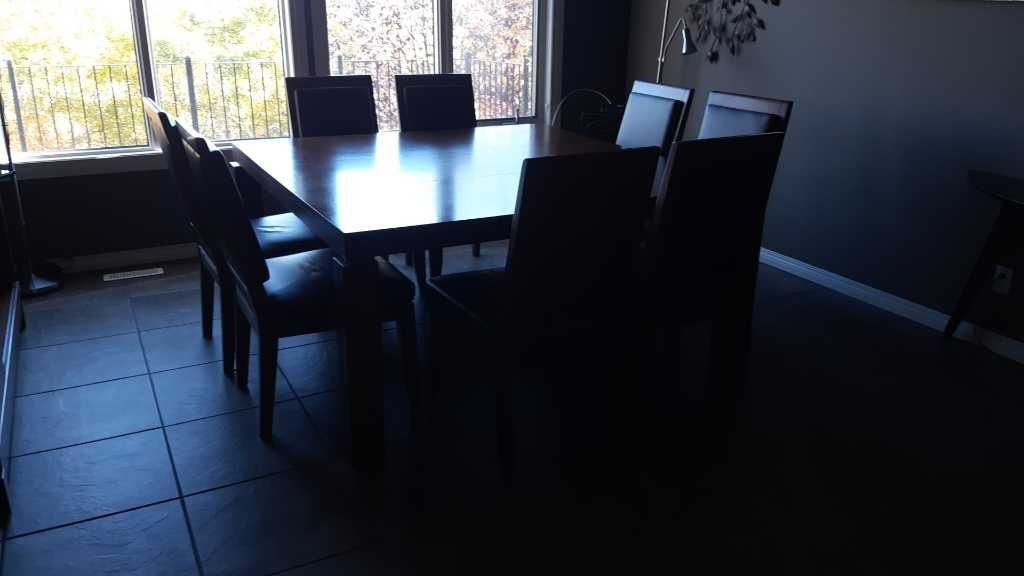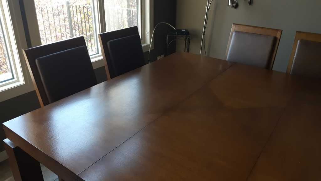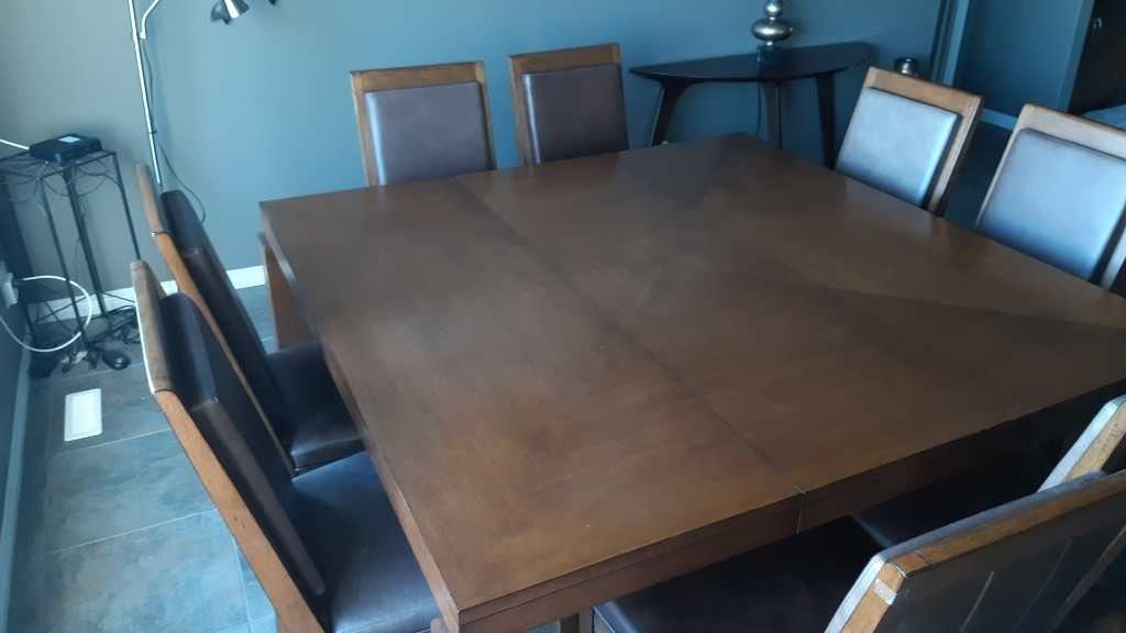 54.75 in by 64.75 in by 30 measured with the leaf in ITEM ON LOCATION IN DEWINTON. THERE WILL BE AN ADDED DELIVERY FEE TO CALGARY. PLEASE CONTACT CAROL 403-837-1233 FOR MORE INFORMATION.