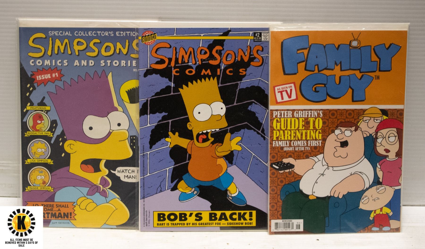 BONGO SIMPSONS #1, 2, FAMILY GUY #1 COMIC LOT