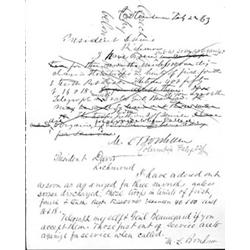 (1813 - 1890) Confederate brigadier general who commanded troops on Morris Island, at the beginning of the war, and a brigade at First Bull Run. In January, 1863 he resigned to become governor of South Carolina, after which he was reappointed to brigadier general and led a cavalry brigade in the Carolinas. War-date A.L.S. "M. L. Bonham" 1p. 4to., Columbia, Feb. 22, 1863, to President Davis, in part: "...I have ordered out as soon as organized for three months, unless sooner discharged, those troops in limits of first, fourth, and tenth regiments…telegraph myself and Gen'l. Beauregard if you accept them…". Interestingly, Bonham's original draft has been crossed out, most likely because of numerous corrections, and secretarially rewritten on the bottom of the sheet. Very good.