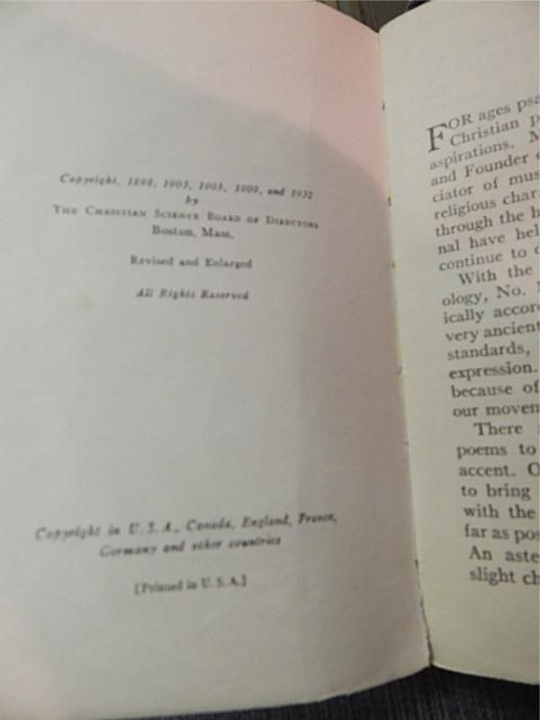 BOOK - CHRISTIAN SCIENCE HYMNAL (WORDS ONLY) - 1932