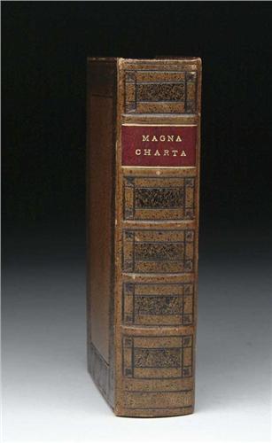 BOOK: MAGNA CHARTA 1587. A 19th or early 20th Century leather bound Latin edition from 1587. The title page as follows: “Magna Charta Cum Statutis, Tum Antiquis, Tum Recentibus, Maximopere, Animo Senendis, Nunc Demum Ad Vnum, Tipis Aedita, Per, Richardum Tottill Anno Domini 1587 Kum Priuilegio Ad Imprimendum Folum”. The last page has the following :”Inprinted at London in Fleete Strete, Within Temple Barre At the Sign of the Hand and Starre By Richarde Tottell, Anno Do. 1587”. PROVENANCE: The Hugh Russell Estate. SIZE: 6” x 4”. CONDITION: Very good, some brown toning to paper. Title page has some edge damage. 9-26684