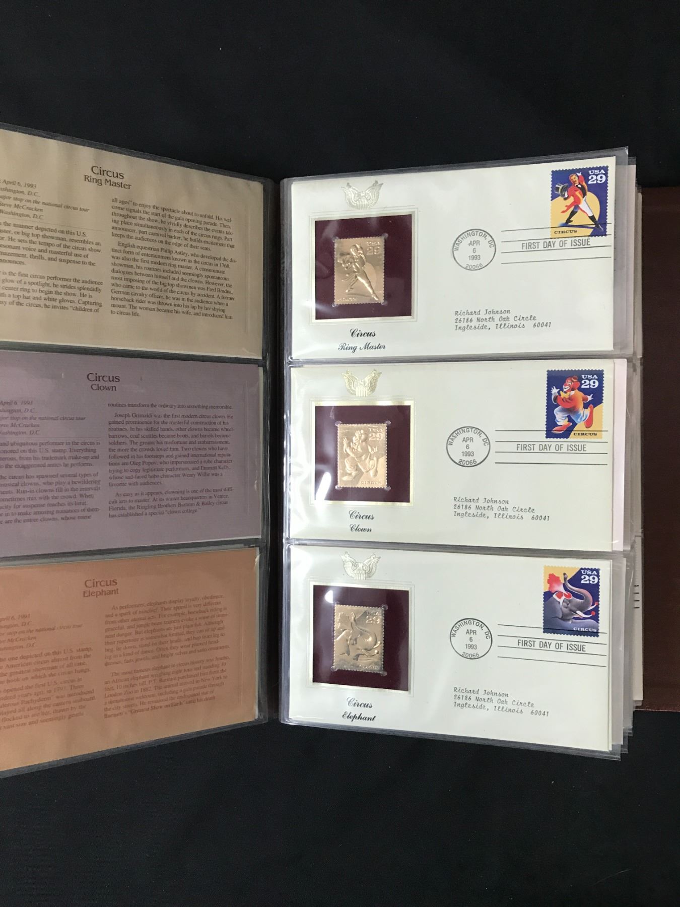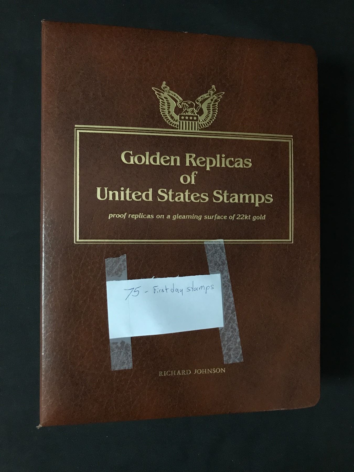 BOOK OF GOLDEN REPLICAS OF UNITED STATES STAMPS - 75 FIRST DAY STAMPS