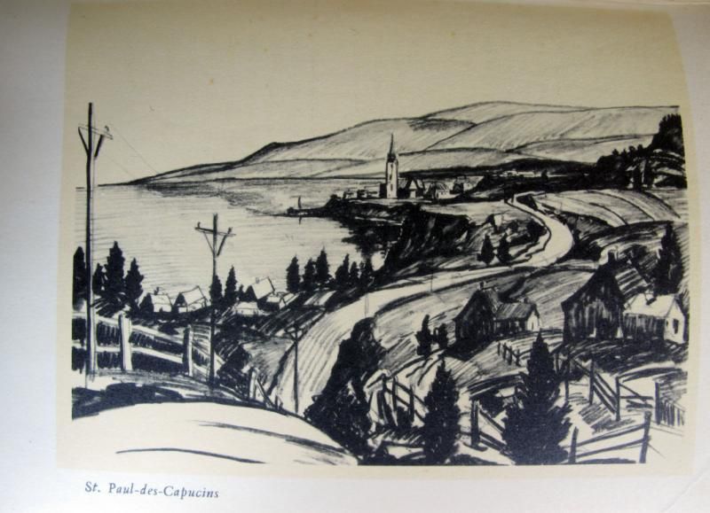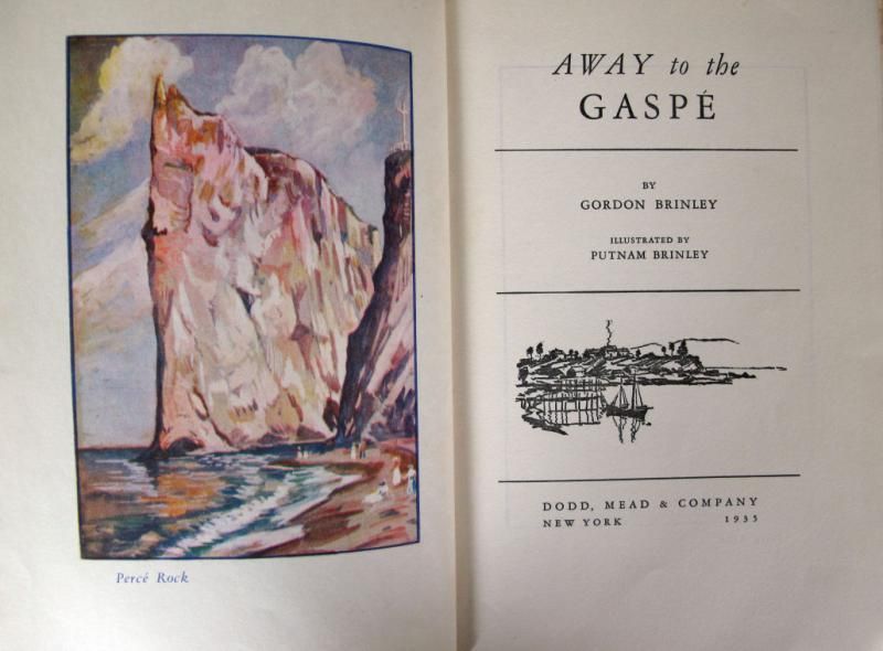 -Brinley, Gordon. AWAY TO THE GASPE. New York, Dodd Mead & Co, 1937. No Jacket. Putnam Brinley (illustrator). Picture of Perce Rock inside front cover and line drawing on facing page. Cover is red cloth with gilt lettering.