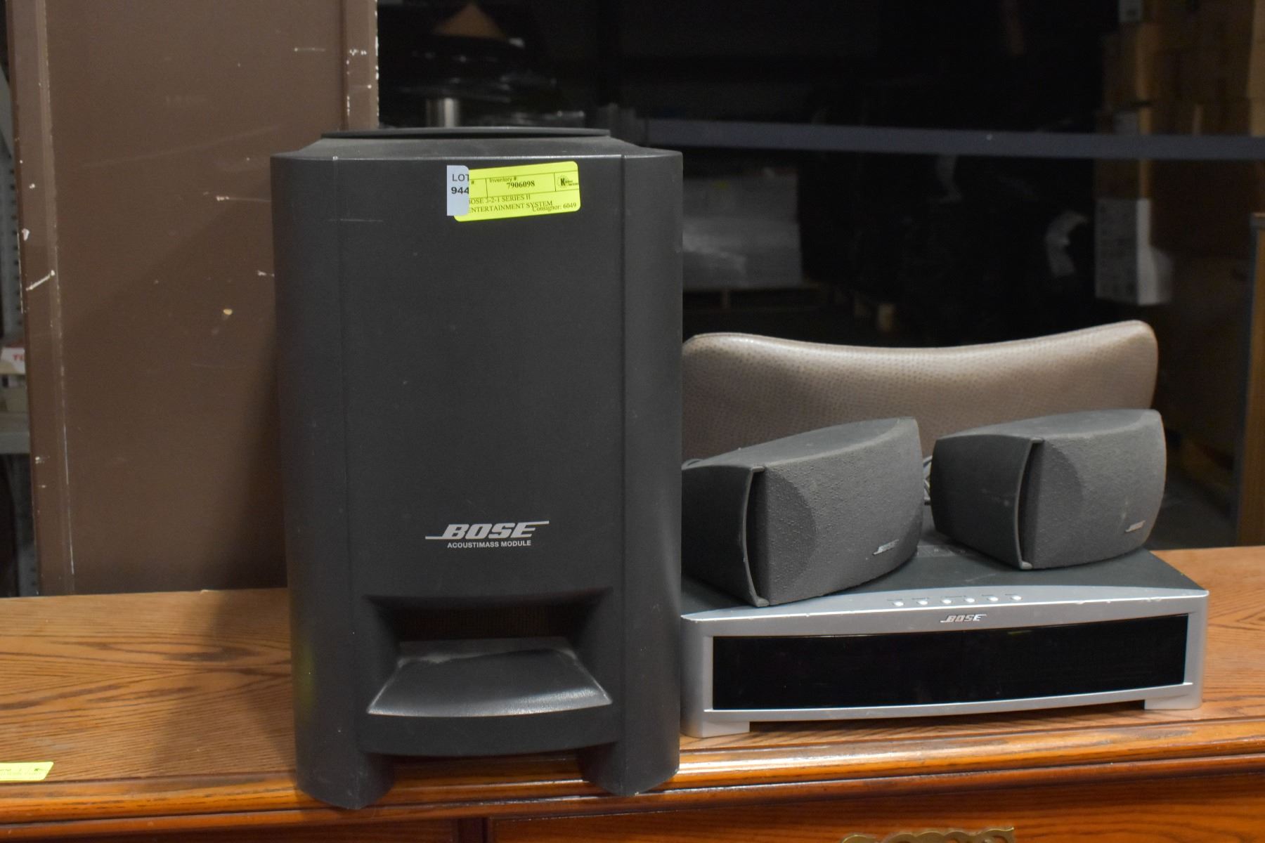 COMES WITH SUBWOOFER, LEFT AND RIGHT SPEAKERS AND MAINFRAME. NOT TESTED. **ALL ITEMS MUST BE REMOVED BY 5PM MONDAY, NOVEMBER 7TH, 2022. ALL REMAINING ITEMS WILL BE SUBJECT TO A $6.00 PER DAY STORAGE CHARGE. ANY ITEMS REMAINING AFTER MONDAY, NOVEMBER 28, 2022 WILL BE CONSIDERED FORFEITED. NO REFUNDS WILL BE ISSUED FOR FORFEITED ITEMS. TO SCHEDULE A PICK UP APPOINTMENT CLICK HERE