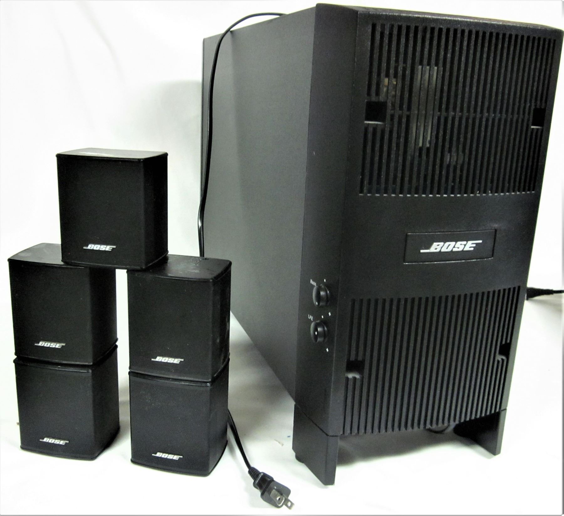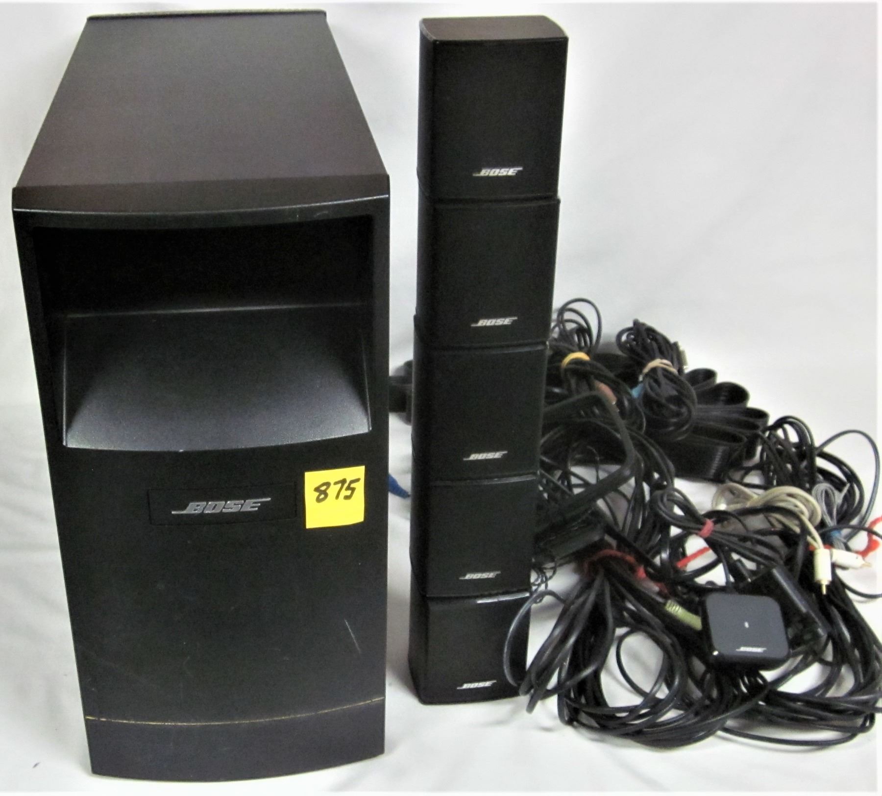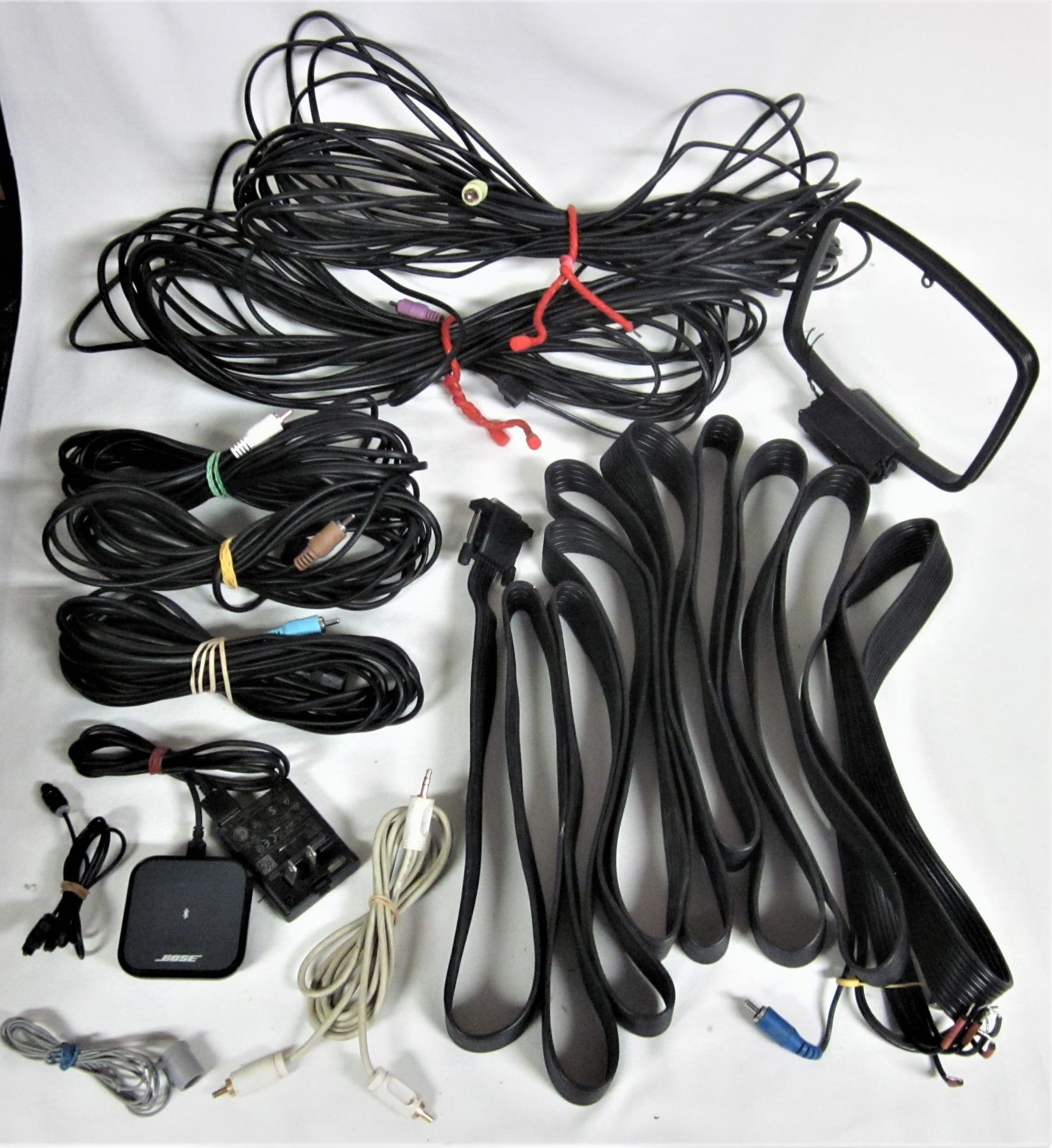 5 mini speakers assorted wires, cables and connectors
