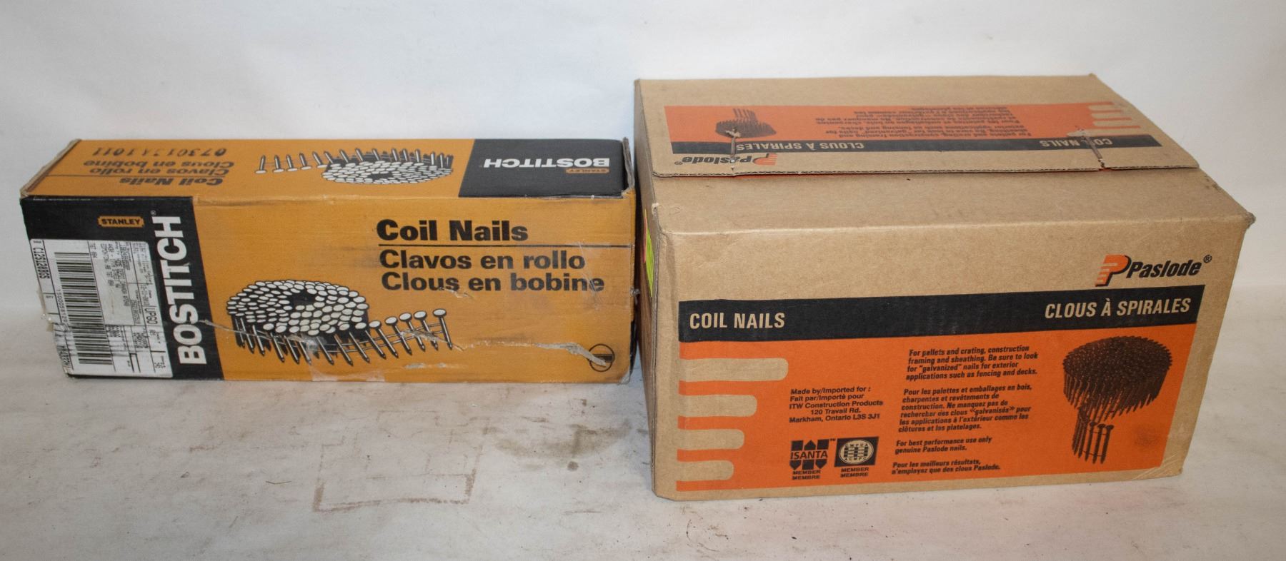 BOSTITCH & PASLODE COIL NAILS **ALL ITEMS MUST BE REMOVED BY 5PM SATURDAY, AUGUST 24th 2024. ALL REMAINING ITEMS WILL BE SUBJECT TO A $6.00 PER DAY STORAGE CHARGE. ANY ITEMS REMAINING AFTER MONDAY, SEPTEMBER 16TH 2024 WILL BE CONSIDERED FORFEITED. NO REFUNDS WILL BE ISSUED FOR FORFEITED ITEMS. TO SCHEDULE A PICK UP APPOINTMENT CLICK HERE