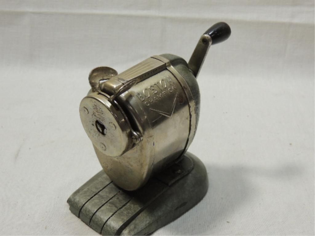 BOSTON CHAMPION VINTAGE STANDING PENCIL SHARPENER. AS SHOWN. SEE PICTURE FOR DETAILS.