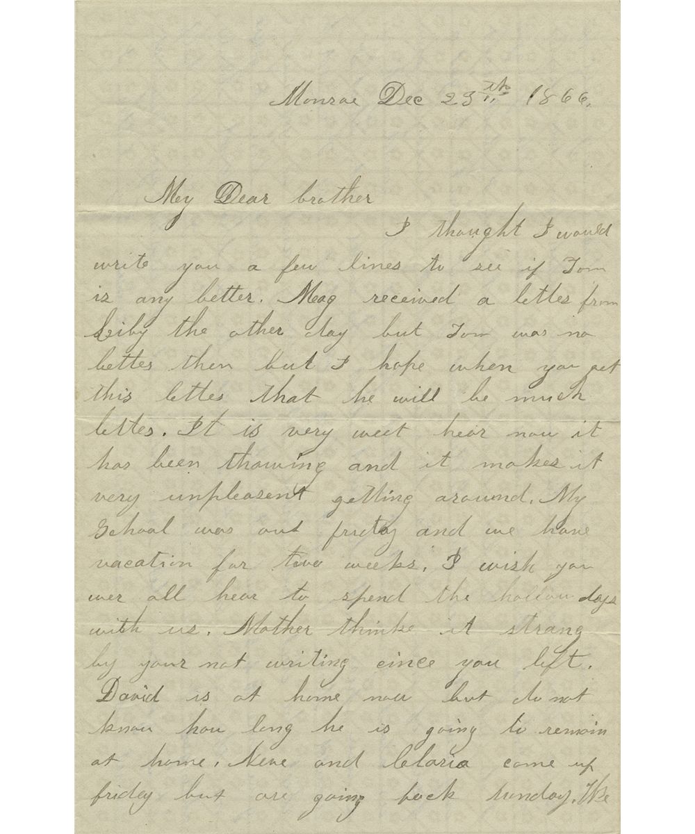 (1848 - 1876) Younger brother of George and Thomas Custer and brother-in-law of First Lt. James Calhoun. Boston served as a guide to George and was killed along with his two brothers at the Little Big Horn. Exceedingly rare A.L.S "Bos", 3pp. 8vo., Monroe, Mi., Dec. 23, 1866 to his brother, George A. Custer who was then serving at Fort Riley, Kansas. In small part: "…My dear brother, I thought I would write you a few lines to see if Tom [Custer] is any better. Mag received a letter from Libby the other day but Tom was no better…I wish you were all here to spend the hollow days with us. Mother thinks it strang by your not writing since you left…We are all well as usual, she has not been very well for to or three days…I asked you for some money I will have to ask you again. I do not like to but can not help it now & don't want any one to see this letter but you. I want to get a pair of new boots, the ones that I am wearing now is about gone & I asked pop if he could get me a new pair and he said that he could not…he did not have the money and if you will give me $4.30…[I] will be a thousand times obliged…Please excuse all misspelled words…" Fine, with a portion of the holograph envelope addressed by him to:"Genl. G. A. Custer Ft. Riley Kansas". Two pieces. Boston and George enjoyed a particularly close relationship, so much so that Boston would join George in the field...and die with him at at the Little Big Horn in 1876.