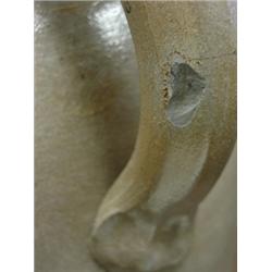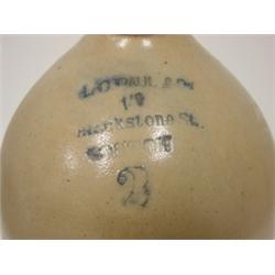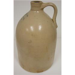 Stoneware jug stamped "LC Paul & ?, ?, Blackstone St., Boston, No. 2". Has one small chip on outer rim. 14.5" H.
