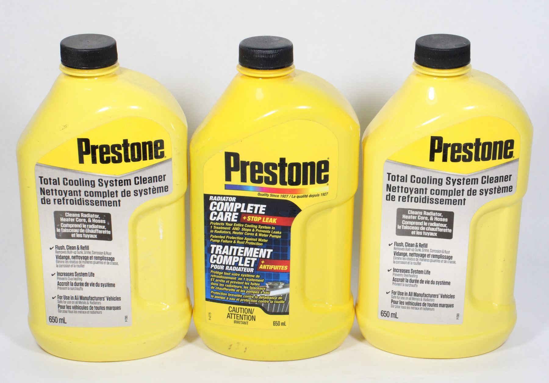 + STOP LEAK. 650ML AND TWO BOTTLES OF PRESTONE TOTAL COOLING SYSTEM CLEANER 650ML