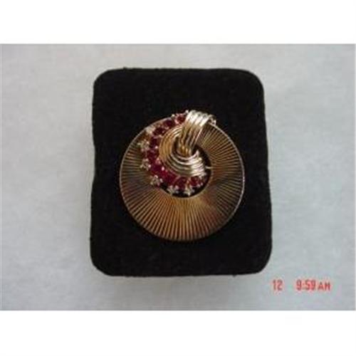 <tr><td>Title:BOUCHER Red Clear Rhinestone Brooch Pin</td></tr>