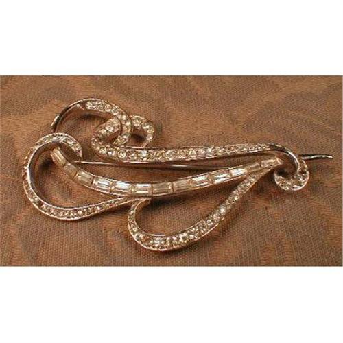Wispy realistic Boucher rhinestone brooch. Three long, curved