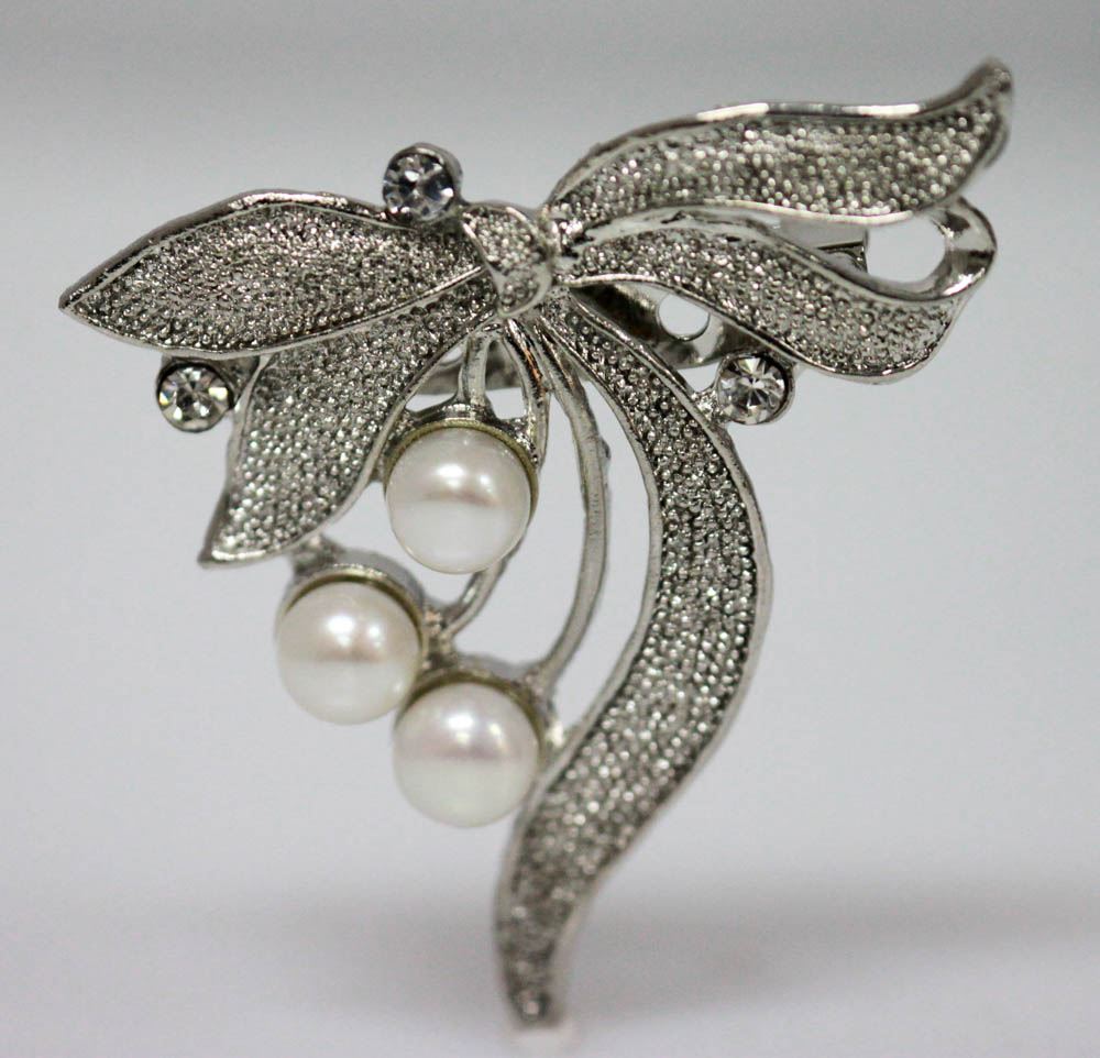 BOW STYLE WHITE PEARL CZ BROOCH .925 STERLING SILVER **|**|** WHITE PEARL CZ BROOCH AUTHENTIC PHILIPPINE PEARL METAL .925 STERLING SILVER