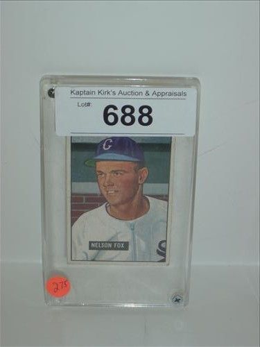 BOWMAN #232 OF 1951 SERIES NELSON FOX BASEBALL CARD IN HARD PROTECTIVE CASE. AS SHOWN. VIEW PICTURE FOR DETAIL.
