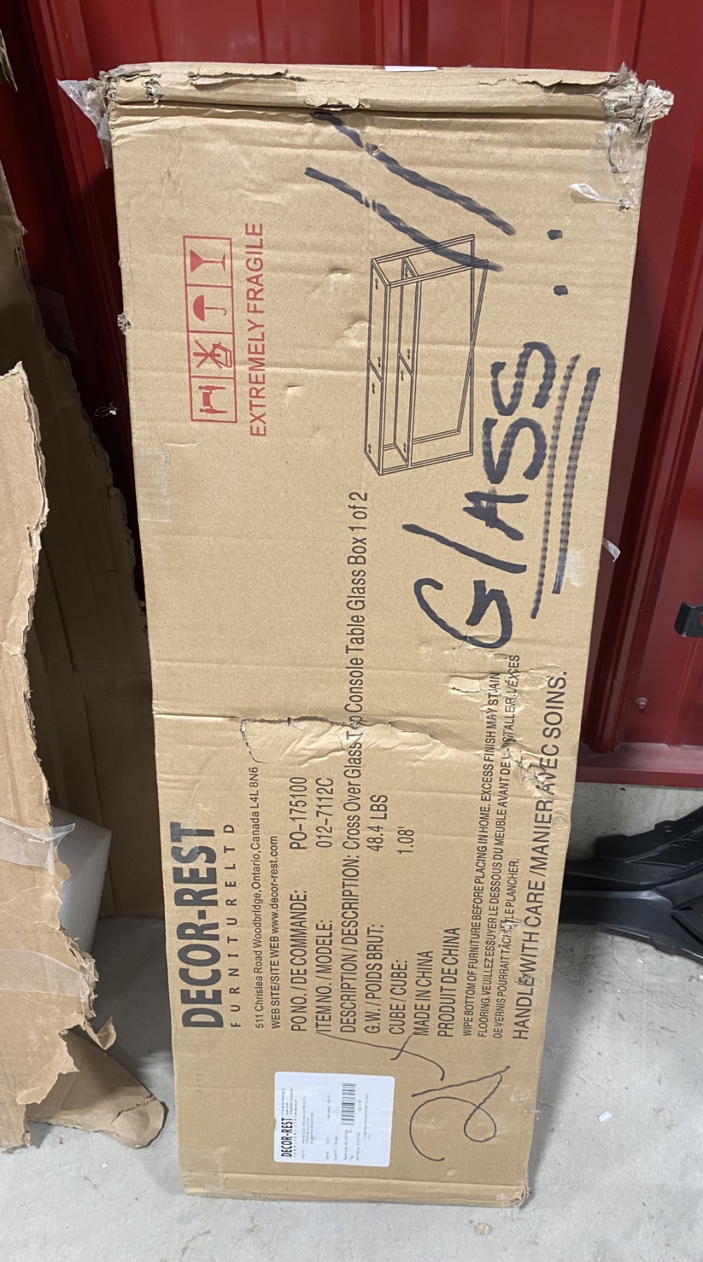 BOX 1 OF 2 OF A GLASS CONSOLE TABLE