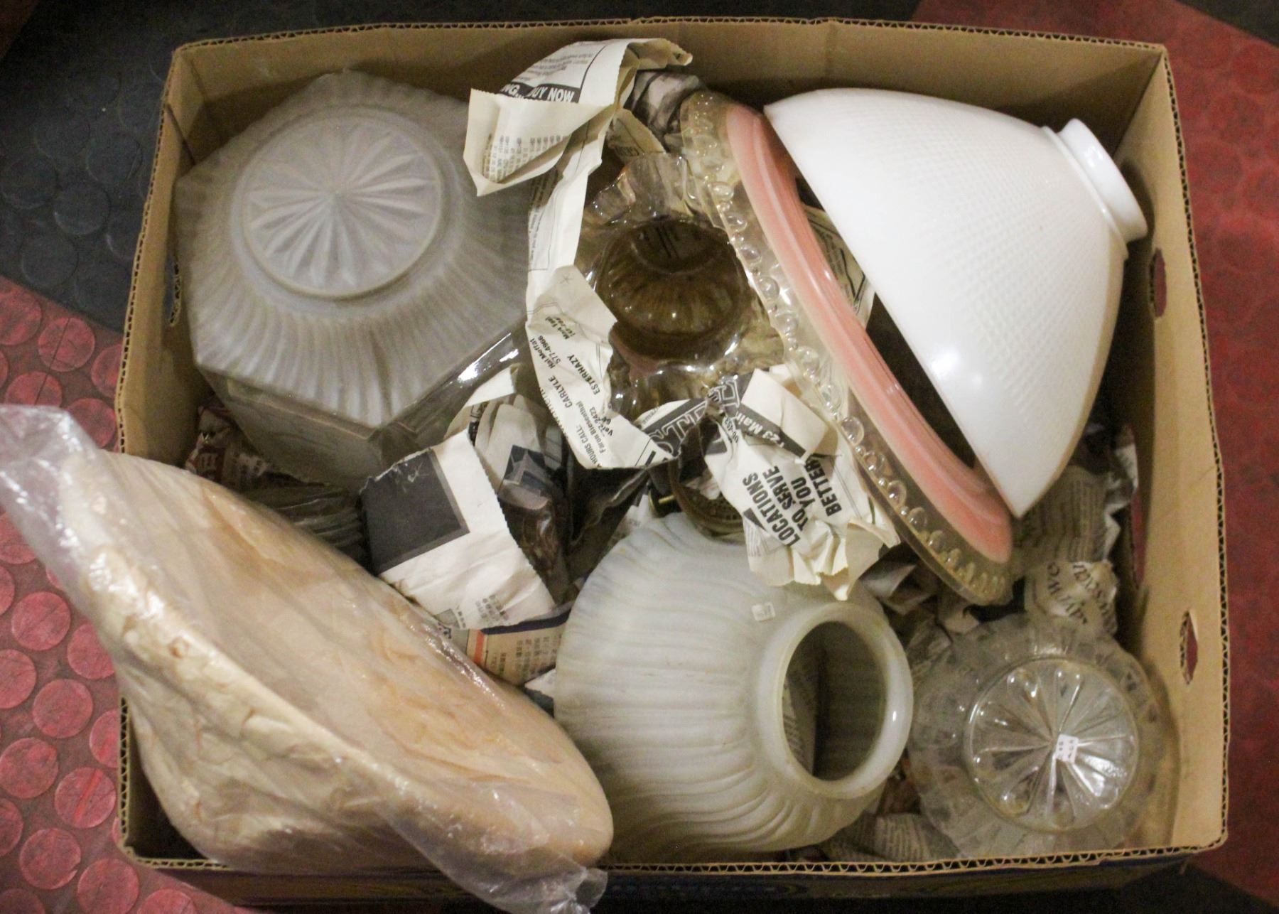 BOX ASSORTED ANTIQUE GLASS LAMP SHADES