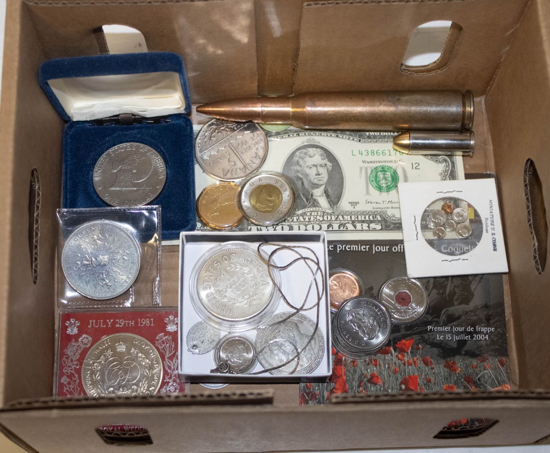 BOX ASST COINS & MINT US $2 BANKNOTE